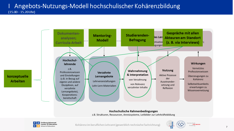 Der Themenschwerpunkt „Kohärenz im beruflichen Lehramt“ umfasste ebenfalls insgesamt 90 Minuten und wurde von der Arbeitsgruppe aus dem Projekt „FACE – Berufliches Lehramt“ der Pädagogischen Hochschule Freiburg mit Dr. Katharina Hellmann, Carsten Lange, Sebastian Gorski, Mandy Steinbach und Dr. Katharina Agostini gestaltet.
