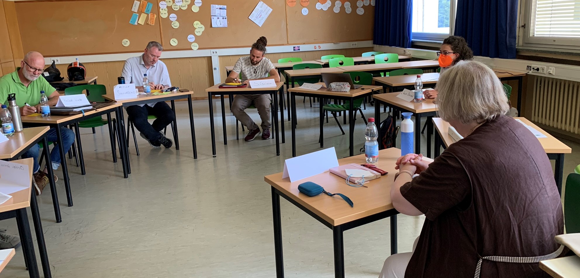 Foto 1: Erster Austausch zu Herausforderungen und Wünschen mit Lehrkräften der Richard-Fehrenbach-Gewerbeschule Freiburg (Foto: v. Gehlen)