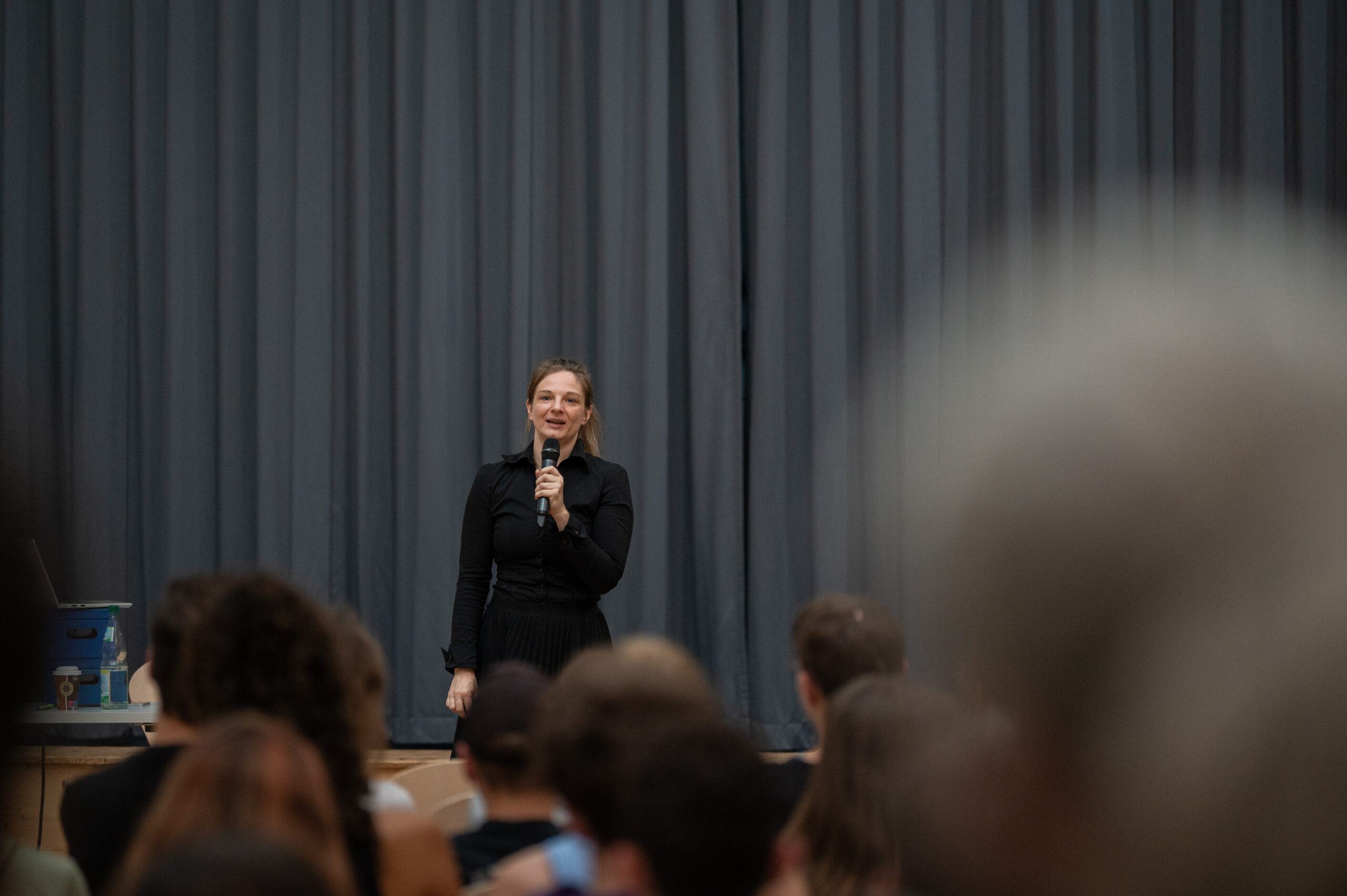 ChatGPT ist derzeit allgegenwärtig – auch und insbesondere im Bildungskontext. Doch was ist eigentlich generative KI? Wie funktioniert sie? Und welche ethischen und gesellschaftlichen Fragen wirft ihr Einsatz auf? Um das zu erfahren, trafen sich am 19. Juli 180 Schüler*innen und Lehrkräfte in der Pausenhalle des Montessori Zentrum ANGELL zu einem Vortrag von Jacqueline Bellon vom Internationalen Zentrum für Ethik in den Wissenschaften, Tübingen.