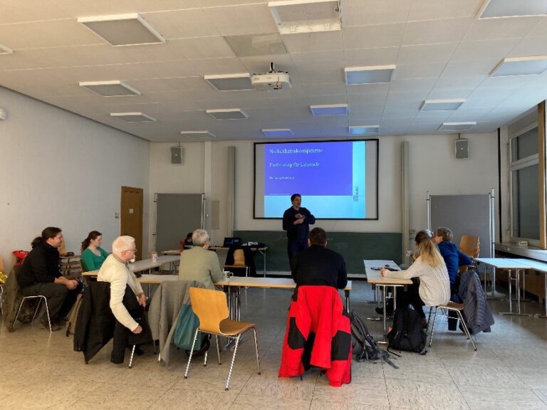 „Alle müssen für Schutz und Deckung der gesamten Schulgemeinschaft sorgen“, so der Referent. Besonders während des sogenannten „therapiefreien Intervalls“, dem Zeitraum zwischen Eintritt eines Schadenfalls und dem Eintreffen ausgebildeter Rettungskräfte, ist der Einsatz der Lehrkräfte gefragt. Hierfür sind gute Sicherheitskompetenzen von Vorteil.