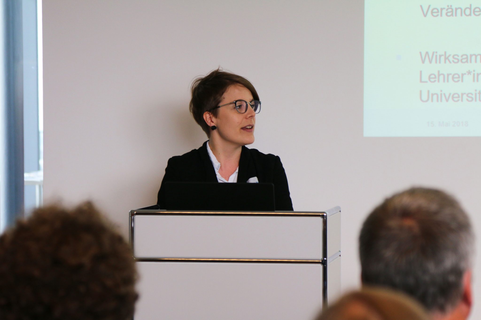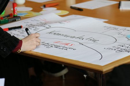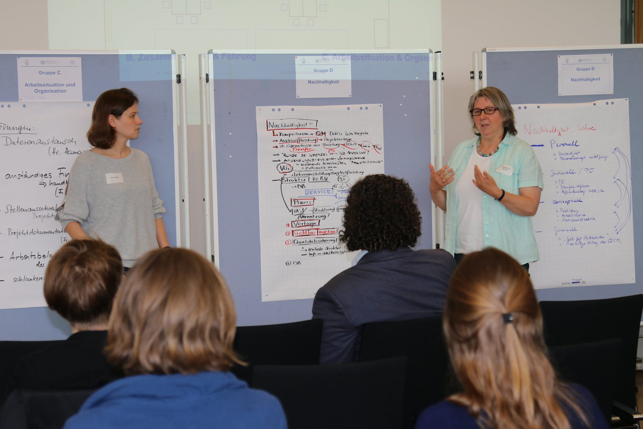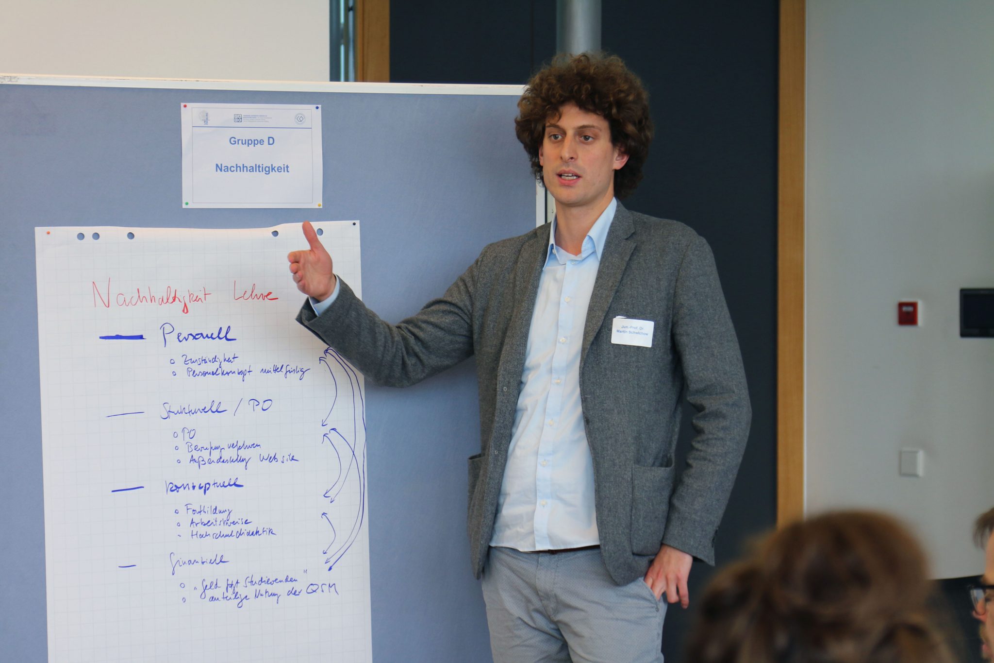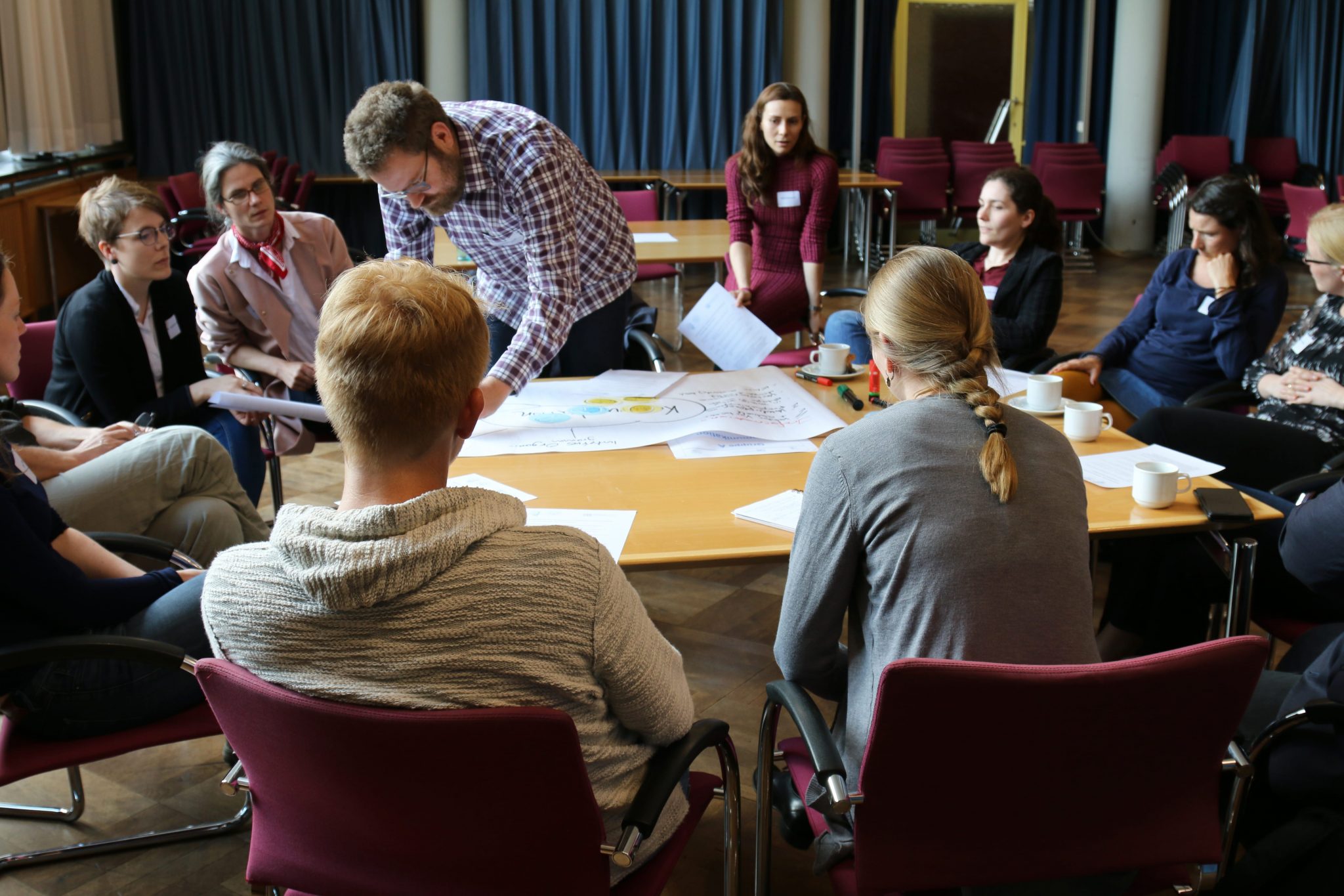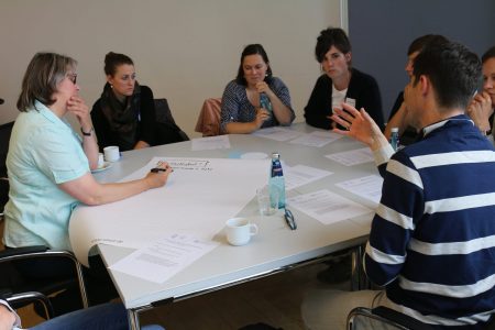 Beim letzten Gesamtprojekttreffen am 02.06.2017 standen die Aktivitäten im Bereich Lehrkohärenz und Lehrentwicklung (Maßnahme 1 im Freiburger Projekt der Qualitätsoffensive Lehrerbildung) im Vordergrund, dieses Treffen stand nun im Zeichen der Qualitätssicherung (Maßnahme 7). Silia Fürniss stellte die Ergebnisse der Feedbackgespräche vor, die zwischen April 2017 und Januar 2018 zur Optimierung von Arbeits- und Kooperationsstrukturen mit 21 Projektmitarbeiter*innen geführt wurden. Es wurden vier Handlungsfelder identifiziert, denen sich die anschließende Gruppenarbeit widmete: Kommunikation, Zusammenarbeit und Führung, Arbeitssituation und Organisation sowie Nachhaltigkeit. Die Ergebnisse der Gruppenarbeit wurden im Plenum vorgestellt und diskutiert.