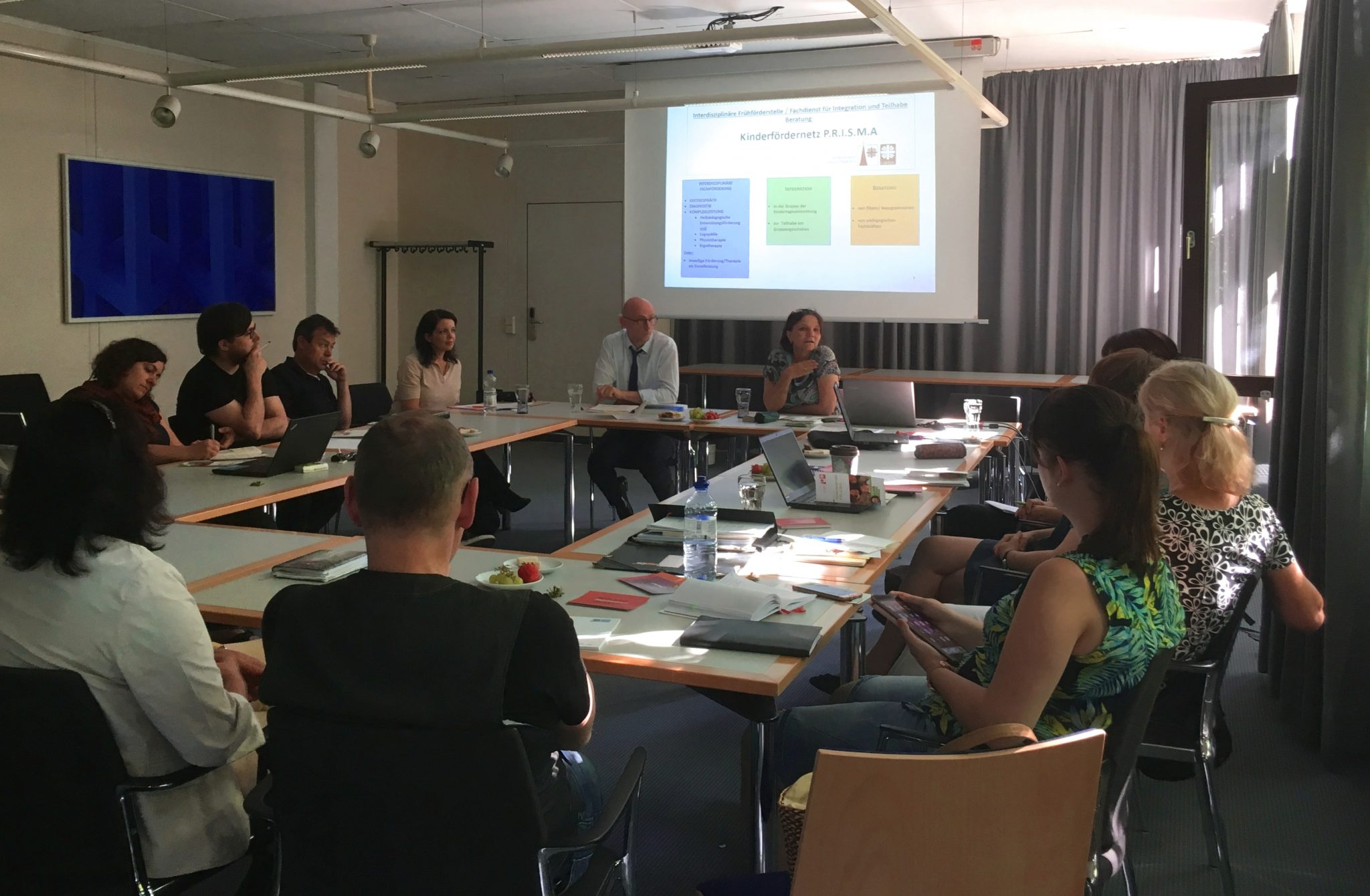 Zunächst berichtete Angelika Seiwert-Leicht über das Kinderfördernetzwerk P.R.I.S.M.A., das vom Caritas-Verband Freiburg-Stadt getragen wird. Dieses bietet neben Beratung für Eltern und Pädagogische Fachkräfte auch die Durchführung von Frühfördermaßnahmen durch ein interdisziplinäres Team und Assistenzleistungen für Kinder an. Die Angebote richten sich explizit auch an Eltern, die Schwierigkeiten mit der deutschen Sprache haben, weshalb auch Informationen in Leichter Sprache zur Verfügung stehen.