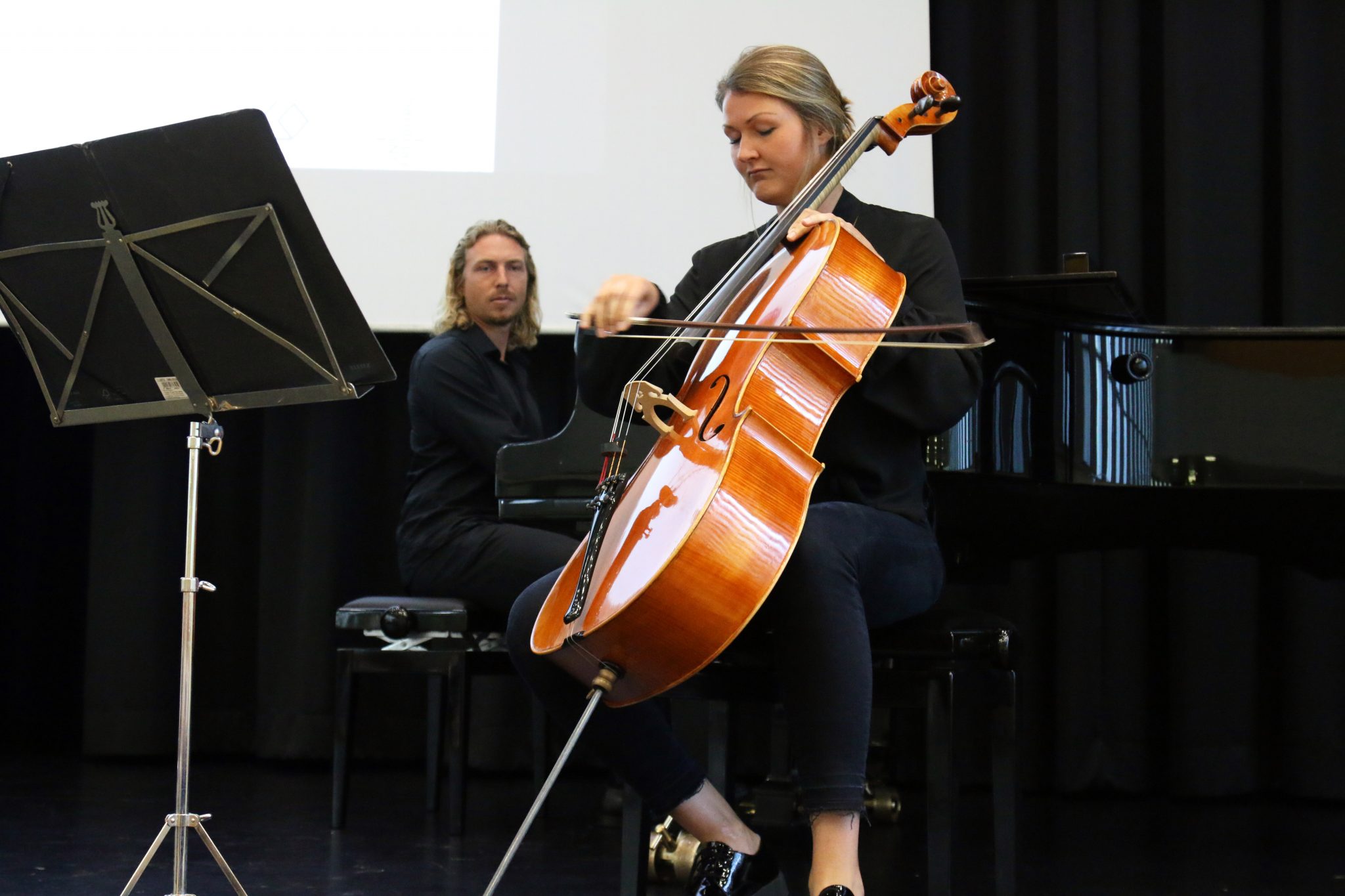 Prof. Dr. Leuders leitete schließlich zu den folgenden drei Vorträgen über, die die Chancen und Herausforderungen des Dialogs von Forschung und Praxis aus drei verschiedenen Perspektiven ausloteten. Zuvor genossen die Gäste ein musikalisches Intermezzo: zwei Studierende der Pädagogischen Hochschule Freiburg präsentierten am Klavier und am Cello „Der Schwan“ aus dem „Karneval der Tiere“ von Camille Saint-Saëns.