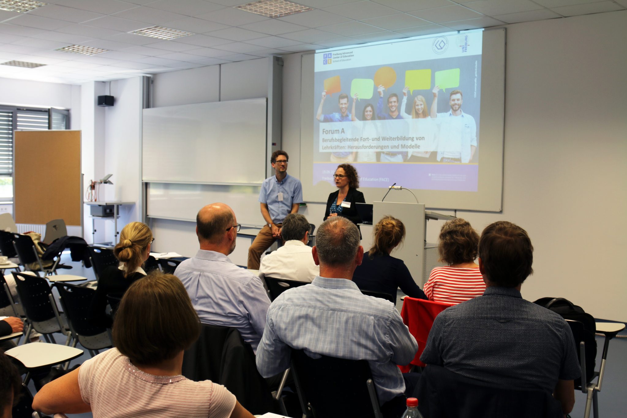 So wurden im Forum Forschungsergebnisse diskutiert zur Dauer von Fortbildungen, zur Begleitung und zur Frage des Bedarfs. Ein Wunsch aus der Schulpraxis war, dass im Anschluss an Fortbildungen Zeit für Reflexion und kollegiales Feedback zur Verfügung stehen sollte, insbesondere vor dem Hintergrund, dass häufig nur eine Lehrerin oder ein Lehrer aus dem Kollegium die Fortbildung besuchen darf. Zuletzt wurde in der Abschlussdiskussion betont, dass es bereits viel Wissen zur forschungsbasierten Gestaltung von Fortbildung gibt, aber letztlich die einzelne Fortbildung im Zentrum stehen sollte: