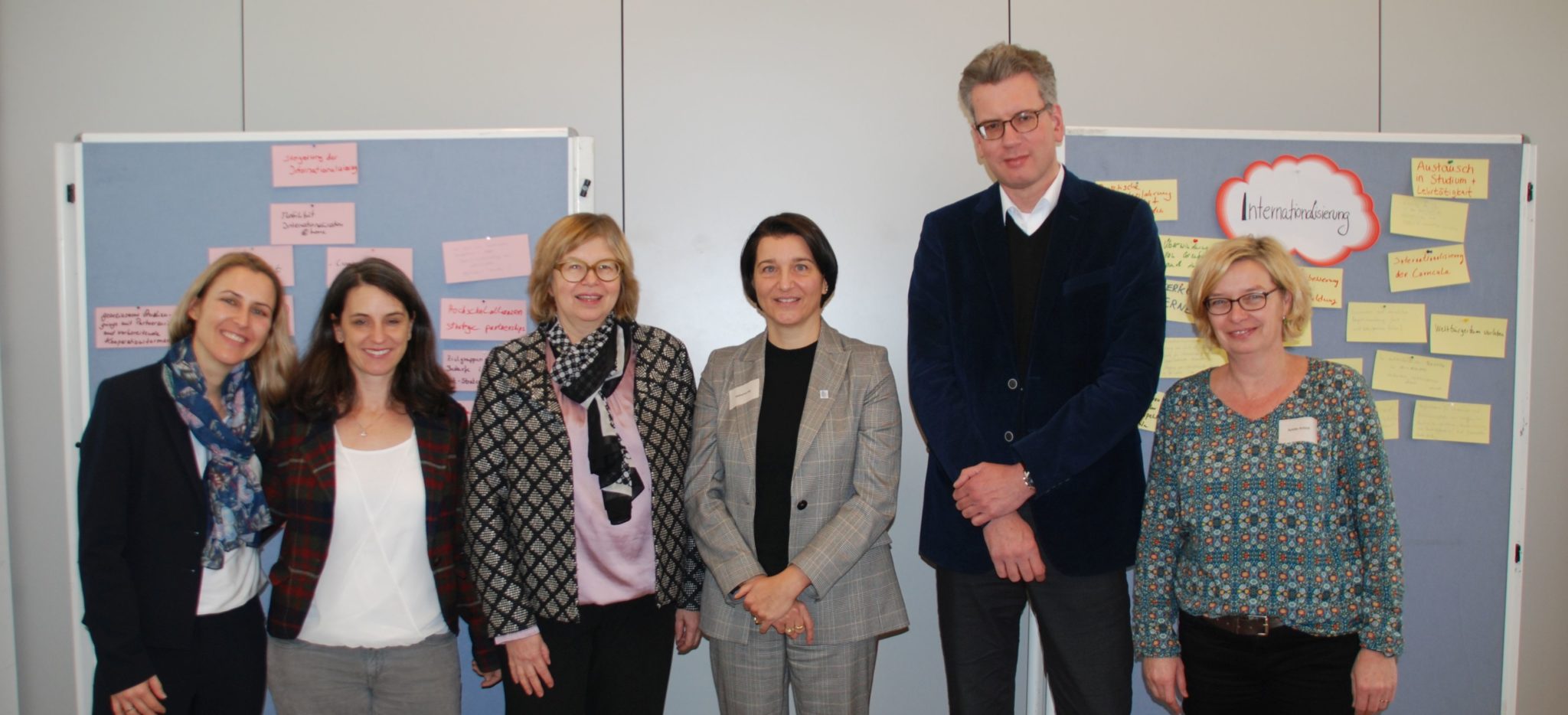 Nach den Impulsen der beiden externen Referent*innen ging es um das Kennenlernen und den Austausch der schon vorhandenen Internationalisierungsbemühungen der Universität und der PH: grundsätzlich wie auch im Bereich der Lehrer*innenbildung. Die beiden Leiterinnen der Auslandsämter der beiden Hochschulen, Frau Aly vom International Office der Universität Freiburg und Frau Dr. Bodenbender vom Akademischen Auslandsamt stellten die Strategien und Aktivitäten der beiden Hochschulen vor.