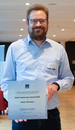 Denis Strassner, Mitarbeiter im Zentrum für Informations- und Kommunikationstechnologie (ZIK) an der Pädagogischen Hochschule Freiburg, wurde mit dem ILIAS Community Award 2019 des Vereins ILIAS open source e-Learning e.V. ausgezeichnet. Seit der Gründung des Vereins 2009 wird der ILIAS Community Award jedes Jahr an Personen verliehen, die sich um ILIAS und die ILIAS-Community besonders verdient gemacht haben.