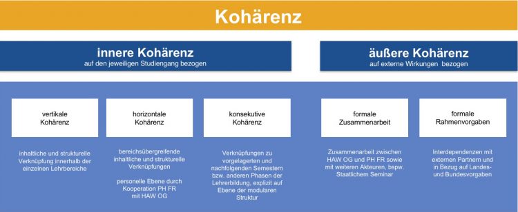 Wie bereits dargelegt, ist die äußere Kohärenz nur bedingt beeinflussbar und auch auf der Ebene der inneren Kohärenz sind die zu stärkenden Dimensionen von unterschiedlicher Bedeutung und Ausgestaltbarkeit. Deshalb wurde zuerst ein studiengangspezifisches Kohärenzmodell auf Grundlage bestehender wissenschaftlicher Konzeptualisierungen entwickelt. In einem zweiten Schritt erfolgte dessen Ausdifferenzierung durch Analyse der primären und sekundären Bedeutungen derjenigen Verknüpfungsebenen, die einerseits essentiell für die fachwissenschaftliche Ausbildung und die pädagogische Professionalisierung sind und die andererseits auch tatsächlich durch die am Studiengang beteiligten Institutionen einer Gestaltbarkeit unterliegen. Eine Erfassung des aktuellen „Kohärenzstandes“ erfolgt durch Dokumentenanalysen, empirische Erhebungen bei Studierenden und Lehrenden sowie Expertenrunden. Curriculare und inhaltliche Veränderungen werden erst nach Reflexion des gesamten Datenmaterials konzeptualisiert.