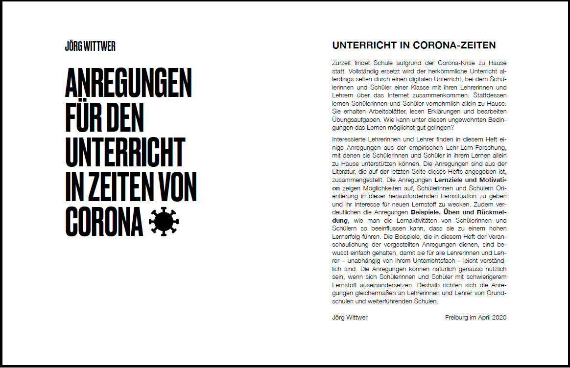 Einen wissenschaftlichen Artikel zu dem Thema „Unterricht in Zeiten von Corona“ des Autors finden Sie hier (frei zugänglich):