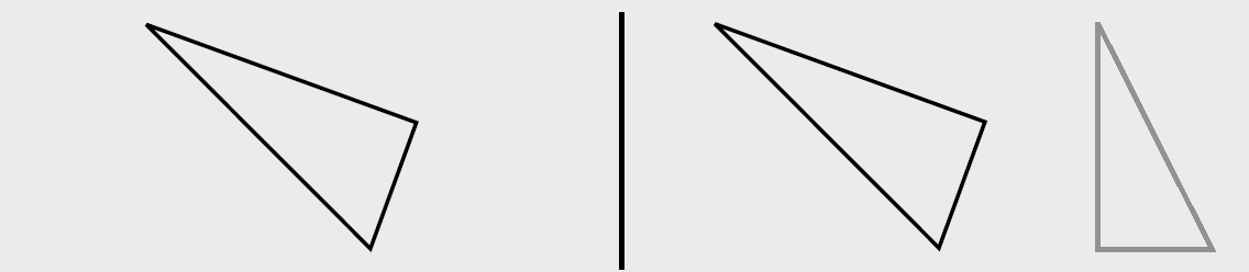 Warum ist das so? Sie sehen links eine geometrische Figur. Sie erkennen sofort, dass es ein Dreieck ist. Rechts sehen Sie zwei geometrische Figuren. Auch hierbei handelt es sich jeweils um ein Dreieck. Bei den zwei Dreiecken wird aber zusätzlich eine Gemeinsamkeit direkt erkennbar: Beide haben einen rechten Winkel.