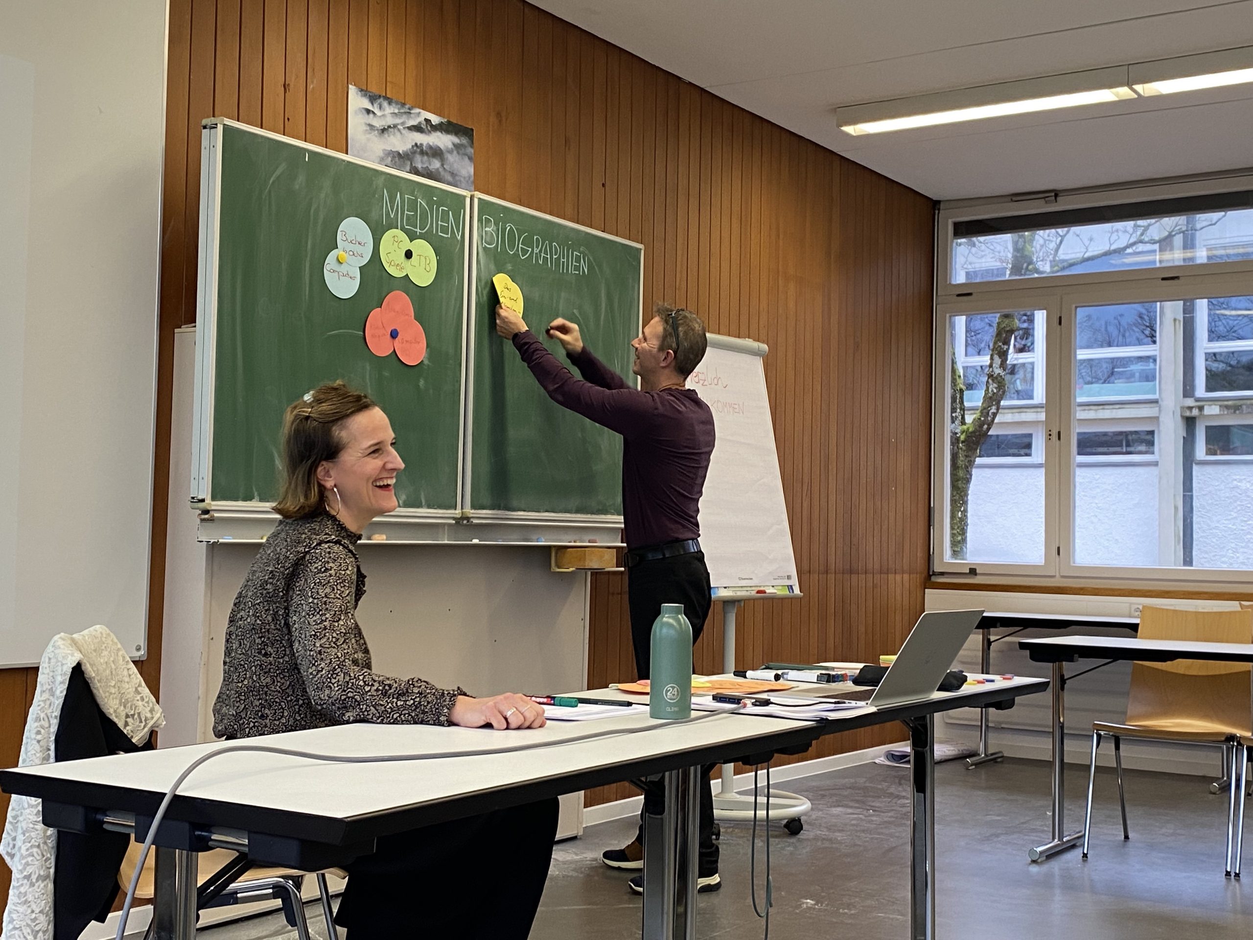 Die Fortbildung, die unter anderem zum Ziel hatte, wie sowohl die Medienkompetenzen als auch die Medienmündigkeit von Schüler*innen gestärkt werden können, gliederte sich in zwei Teile, einen Präsenzteil an der Pädagogischen Hochschule Freiburg und einen Online-Teil. Beginnend mit einer medienbiografischen Übung, in der die Teilnehmenden ihre Medienerfahrungen aus der Kindheit teilten, förderte die Referentin den gegenseitigen Austausch und schuf eine offene und vertrauensvolle Atmosphäre.