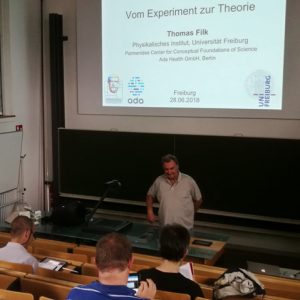 Im Juni und Juli 2018 besuchten Lehrkräfte der Sekundarstufen I und II die FACE-Fortbildung „Experiment und Theorie“ an der Albert-Ludwigs-Universität Freiburg. Der Referent Prof. Dr. Thomas Filk ist Dozent am Physikalischen Institut der Universität Freiburg. Er beschäftigt sich seit vielen Jahren mit der Philosophie der Physik und der Wissenschaftstheorie zur Physik.