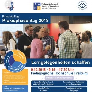 Am 09.10.2018 fand bereits zum zweiten Mal der Praxisphasentag des Praxiskollegs (FACE) an der Pädagogischen Hochschule Freiburg statt. Unter dem Motto „Lerngelegenheiten schaffen“ wurde den rund 150 Teilnehmer*innen erneut ein wissenschaftsorientierter und praxisbasierter Dialog über die gemeinsame Gestaltung von den Praxisphasen in den verschiedenen Lehramtsstudiengängen und im Referendariat ermöglicht.