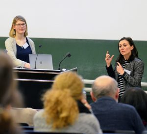 Jun.-Prof. Lena Wessel und Prof. Kalkavan-Aydin während ihres Vortrages im Zuge der Ringvorlesung des Praxiskollegs