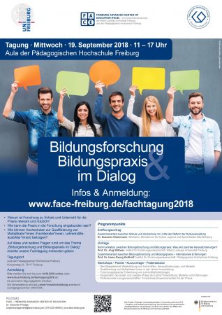 Die diesjährige Fachtagung trägt den Titel Bildungsforschung und Bildungspraxis im Dialog und wird vom Freiburg Advanced Center of Education (FACE) ausgerichtet. Die Veranstaltung findet am Mittwoch, den 19. September 2018, von 11.00 bis ca. 17.00 Uhr, in der Aula der Pädagogischen Hochschule Freiburg statt.