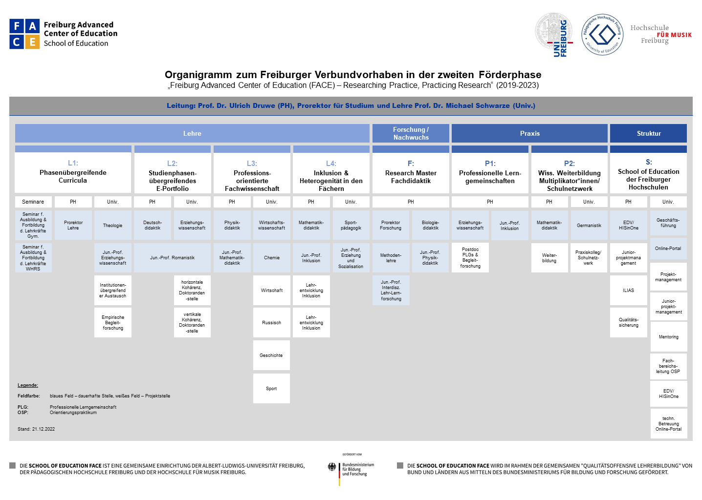 In der zweiten Förderphase der „Qualitätsoffensive Lehrerbildung“ waren die beiden Hochschulen mit dem Verbundantrag „Freiburg Advanced Center of Education (FACE) – Researching Practice, Practicing Research“ erneut erfolgreich und erhalten vom 01.01.2019 bis zum 31.12.2023 insgesamt 7,3 Millionen Euro für die Umsetzung der geplanten Projekte.