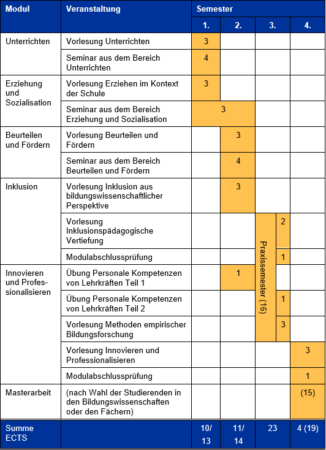 Organisation des bildungswissenschaftlichen Studiums im Master of Education